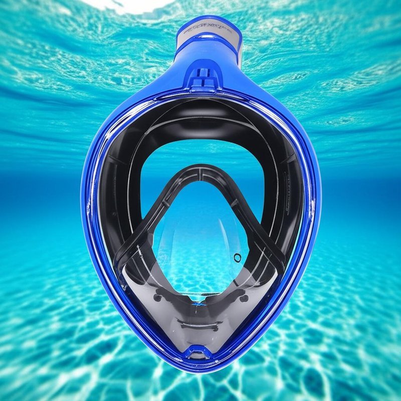ماسک دارای فناوری ضد مه و کانال های تنفسی جداگانه برای تنفس راحت و ایمن زیر آب است.
